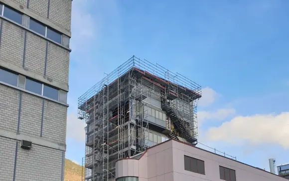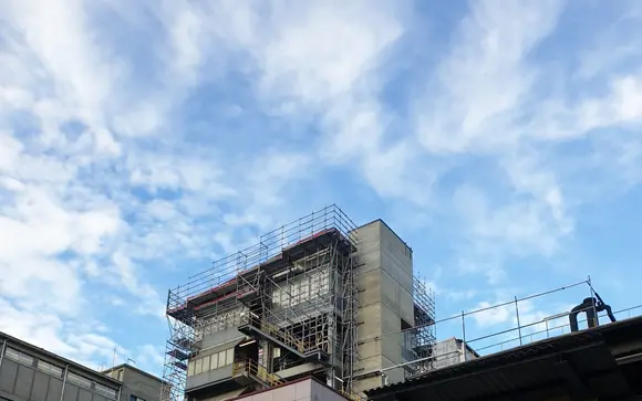 Aufbau Fassadengerüste und Treppentürme.