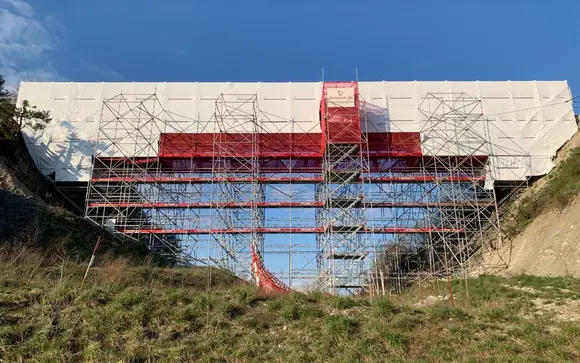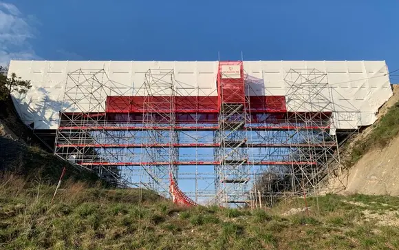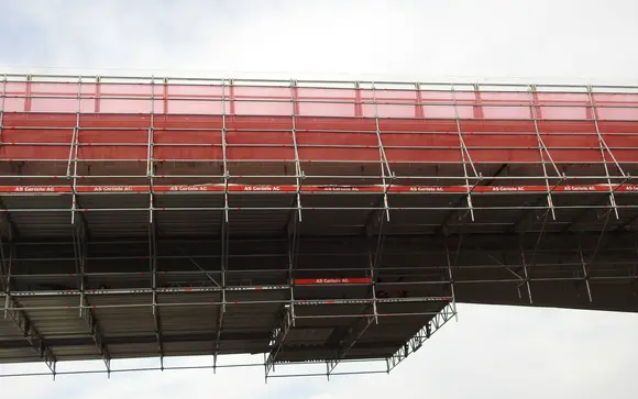 Aufbau Hängegerüst Allround damit die Sanierung der Brückenköpfe ausgeführt werden kann.
