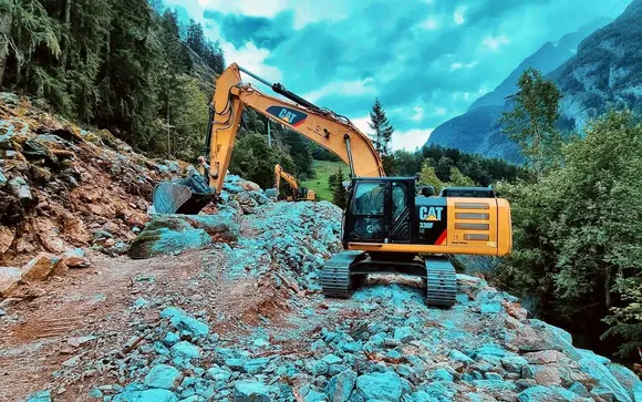 Wir führen folgende Arbeiten aus: Bau von Steinschlagschutzdämmen im Gebiet Balmatten St. Niklaus.