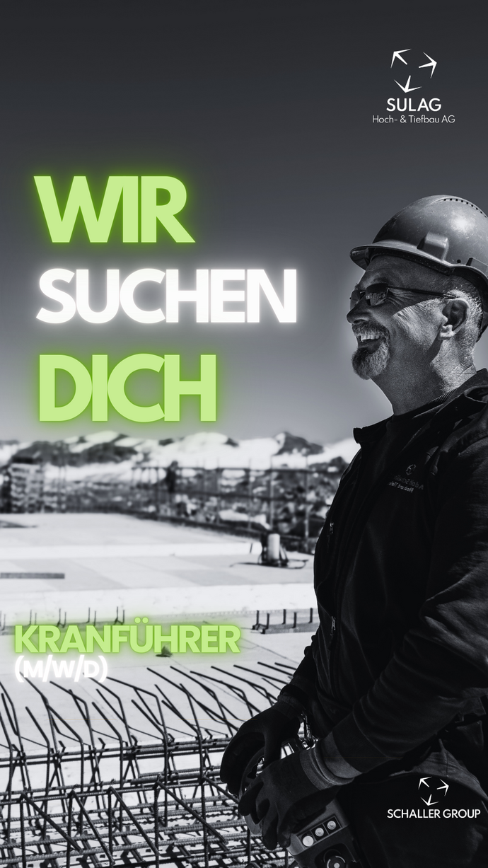 - Dein Profil: Schweizer Kranführerausweis A/B, Erfahrung, ruhige Hand und ein verlässlicher Arbeitsstil.